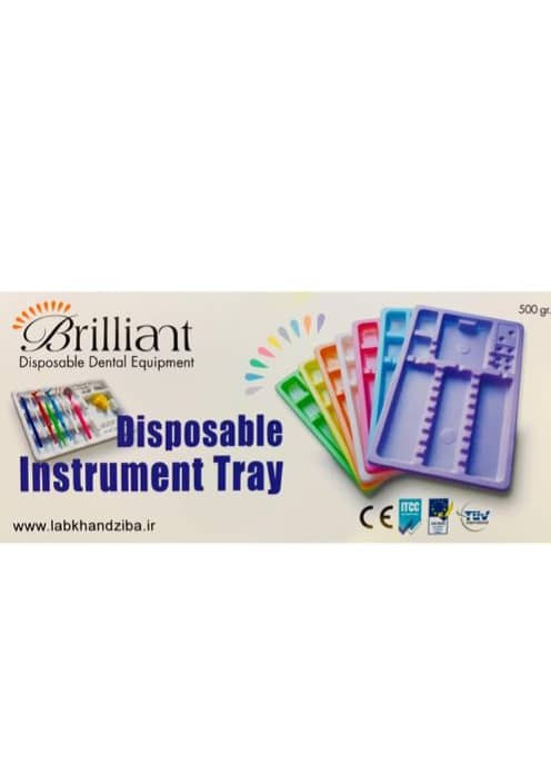 سینی یکبارمصرف دندانپزشکی با جنس پلاستیک مقاوم، محفظهدار و رنگهای متنوع، مناسب برای سازماندهی ابزارها در کلینیکها. یکبارمصرف و وزن 500 گرم