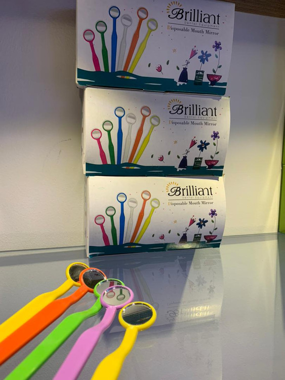 آینه معاینه رنگی دندانپزشکی یکبار مصرف برلیانت محصولی با کیفیت و کاربردی برای کلینیکها و مطبهای دندانپزشکی است که با طراحی ارگونومیک و رنگهای جذاب مانند نارنجی، زرد، سبز و بنفش عرضه میشود.