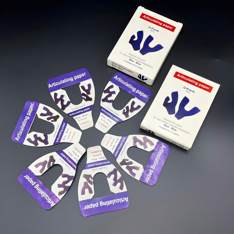شکل نعل اسبی (نعلی) این کاغذ، مخصوصاً برای فک بالا و پایین طراحی شده تا بدون دردسر و چسبندگی، کل قوس دندانی رو پوشش بده. ۷۲ عدد کاغذ دو رنگ آبی/آبی تو یه بسته، یعنی تشخیص تماسها با وضوح خیرهکننده!