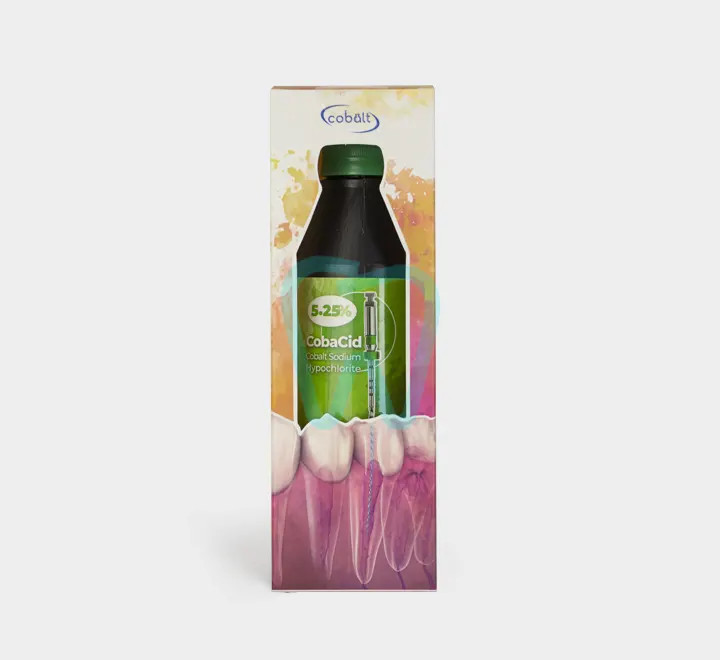 خرید محلول هیپوکلریت سدیم کبالت، بهخصوص برای دستیابی به موفقیت در درمانهای ریشه، لازمهٔ کار هر دندانپزشک است. این محصول ساخت ایران است و علاوهبر داشتن 5.25% هیپوکلریت سدیم در فرمولاسیون خود، حاوی سورفکتانت نیز هست تا از عملکردی مؤثرتر و بهینهتر برخوردار شود. Cobalt CobaCid بهشکل بطریهایی 200 میلیلیتری تولید و عرضه میشود: بههمراه یک سرنگ 5 سیسی و یک کانکتور در هر بسته که کار استفاده از محلول را بسیار آسان و از هدررفت آن جلوگیری میکنند.