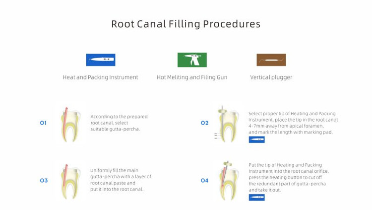 - تطبیقپذیری متریال: قابلیت تنظیم دما در یک دامنه گسترده، به دندانپزشک اجازه میدهد تا دمای دستگاه را بر اساس نوع گوتاپرکا، تکنیک آبچوراسیون (مثلاً Down-Pack یا Backfill) و شرایط بالینی خاص تنظیم کند. این کنترل دقیق، تضمین میکند که ذوب گوتاپرکا به صورت بهینه و بدون ایجاد حرارت اضافی در خارج از کانال انجام شود.