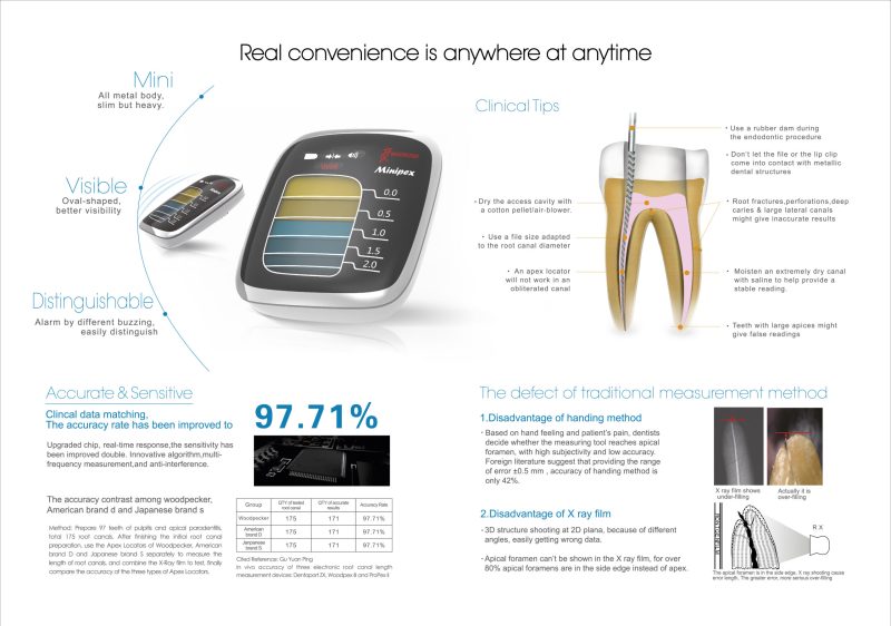 درمان ریشه موفق، پیشآگهی دندان را تضمین میکند. Minipex با افزایش دقت در تعیین طول کارکرد، به طور مستقیم به این هدف کمک میکند: