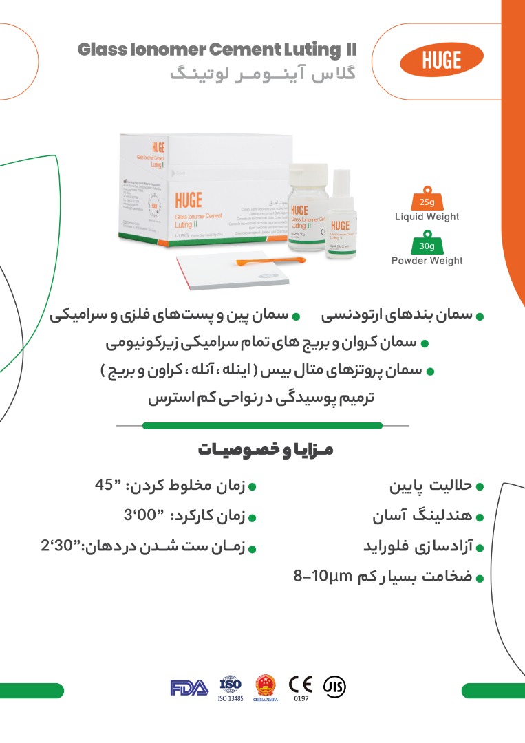 - هندلینگ آسان و بیدردسر: فرمولاسیون بهینه شده این سمان، کار را برای دندانپزشکان عزیز آسان کرده و فرآیند سمانگذاری را به تجربهای لذتبخش و بدون استرس تبدیل میکند.