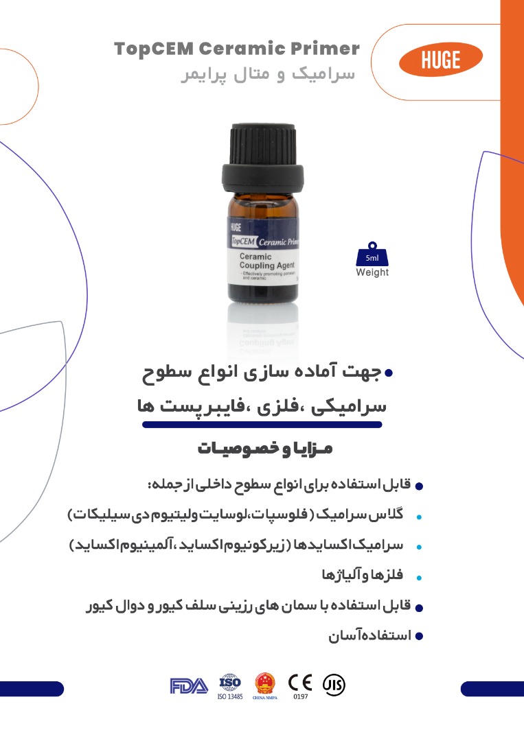 این پرایمر چندمنظوره، به عنوان یک عامل جفتکننده قدرتمند، پیشدرمانی حیاتی برای دستیابی به نتایج پیوند ایدهآل است. چه در حال کار با ترمیمهای سرامیکی ظریف باشید، چه پروتزهای فلزی مستحکم، و یا فایبرپستهای مورد نیاز در درمانهای اندودانتیک، TopCEM تضمین میکند که پیوند شما قوی، پایدار و بادوام خواهد بود.