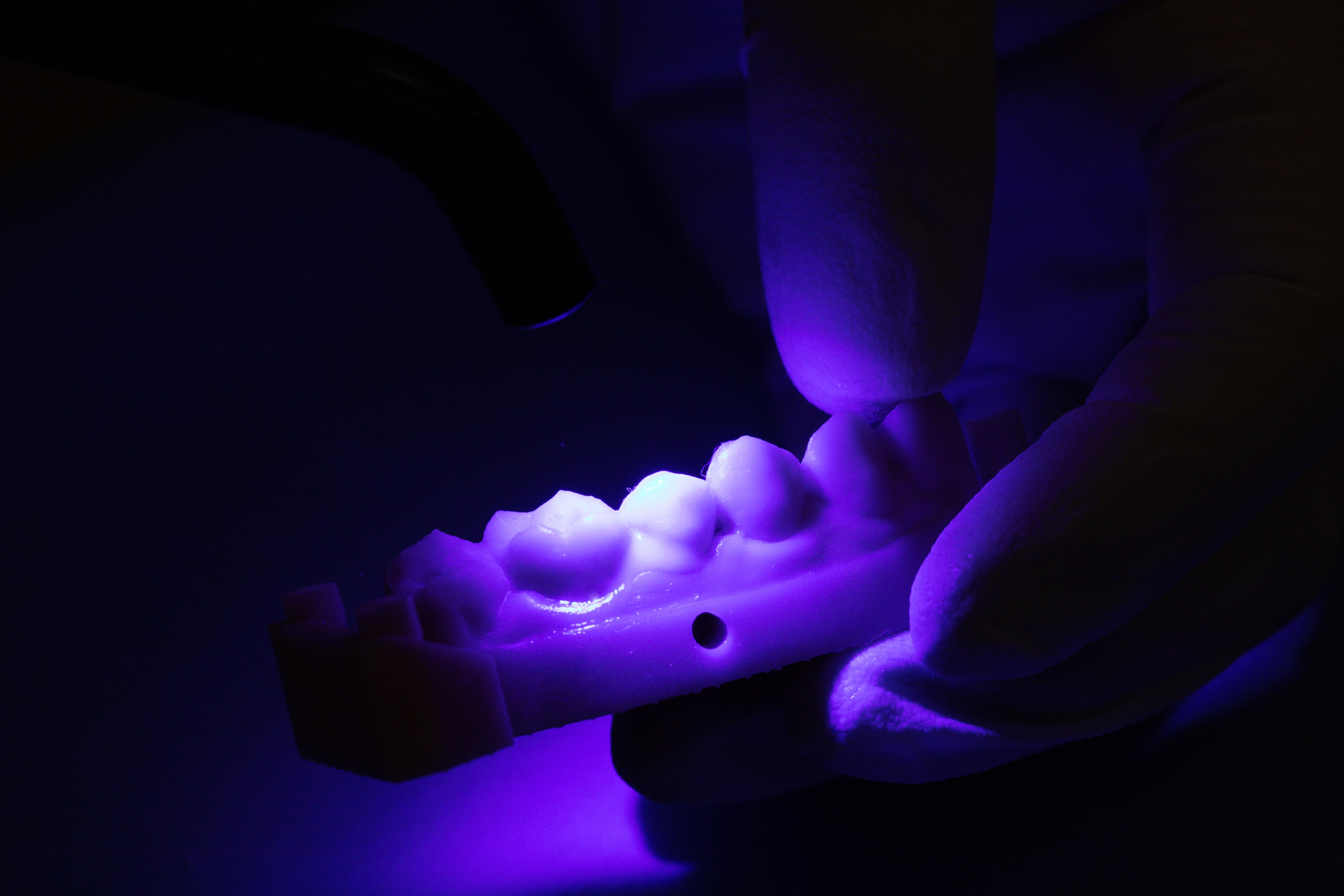 - پخت نوری (Light Cure): این بخش به دندانپزشک کنترل کامل روی زمان سمنتاسیون میدهد. نور فعال میشود، سمان شروع به سفت شدن میکند و دندانپزشک فرصت دارد تا پروتز را دقیقاً در جای خود قرار دهد و مواد اضافی را پاک کند.