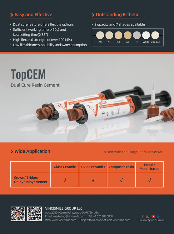 اگر به دنبال قدرت، دوام، زیبایی و اطمینان در سمنتاسیون پروتزهای دندانی خود هستید، Vincismile – TopCEM انتخاب هوشمندانهای است. با "پگاه طب"، در اقیانوس آبی دندانپزشکی بدرخشید و مشتریان خود را با نتایج درخشان، شگفتزده کنید!