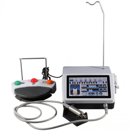 موتور ایمپلنت WJ Medical ویژگیها: کنترل لمسی دقیق، در یک نگاه واضح. طراحی رابط کاربری بصری و ساده است و عملکرد آن راحت است. مجهز به سیستم لمسی هوشمند، فرآیند کاشت را ساده کرده و دقت کاشت را بهبود میبخشد. پدال پایی چند منظوره: کنترل حجم آب، تغییر برنامه، تغییر به جلو/عقب و سایر عملکردها را برای آزاد کردن دستان شما، بهبود امنیت و راحتی ادغام میکند. موتور: طراحی سبک و عدم خستگی در هنگام نگه داشتن طولانی مدت. رابط بادوام: اتصال و تعویض آسان، صرفه جویی در نگرانی و تلاش. مشخصات: مشخصات میزبان ولتاژ تغذیه: AC220V؛ فرکانس برق: 50 هرتز؛ توان ورودی: 150 ولت آمپر؛ اندازه: 280 میلیمتر * 268 میلیمتر * 135 میلیمتر؛ محیط کار: محدوده دمای محیط: +5 ~ 40℃؛ محدوده رطوبت نسبی: 30٪ ~ 75٪؛ مشخصات موتور محدوده چرخش: 300-40000 دور در دقیقه؛ محدوده گشتاور: ۵-۷۰ نیوتن متر (نسبت دنده: ۲۰:۱)؛ ولتاژ ورودی: DC36V؛ اندازه: قطر ۲۴ میلیمتر، طول ۱۱۰ میلیمتر؛ طول دم خوکی: ۱.۸ متر؛ مشخصات پدال چند منظوره طول دم خوکی: ۲.۸ متر